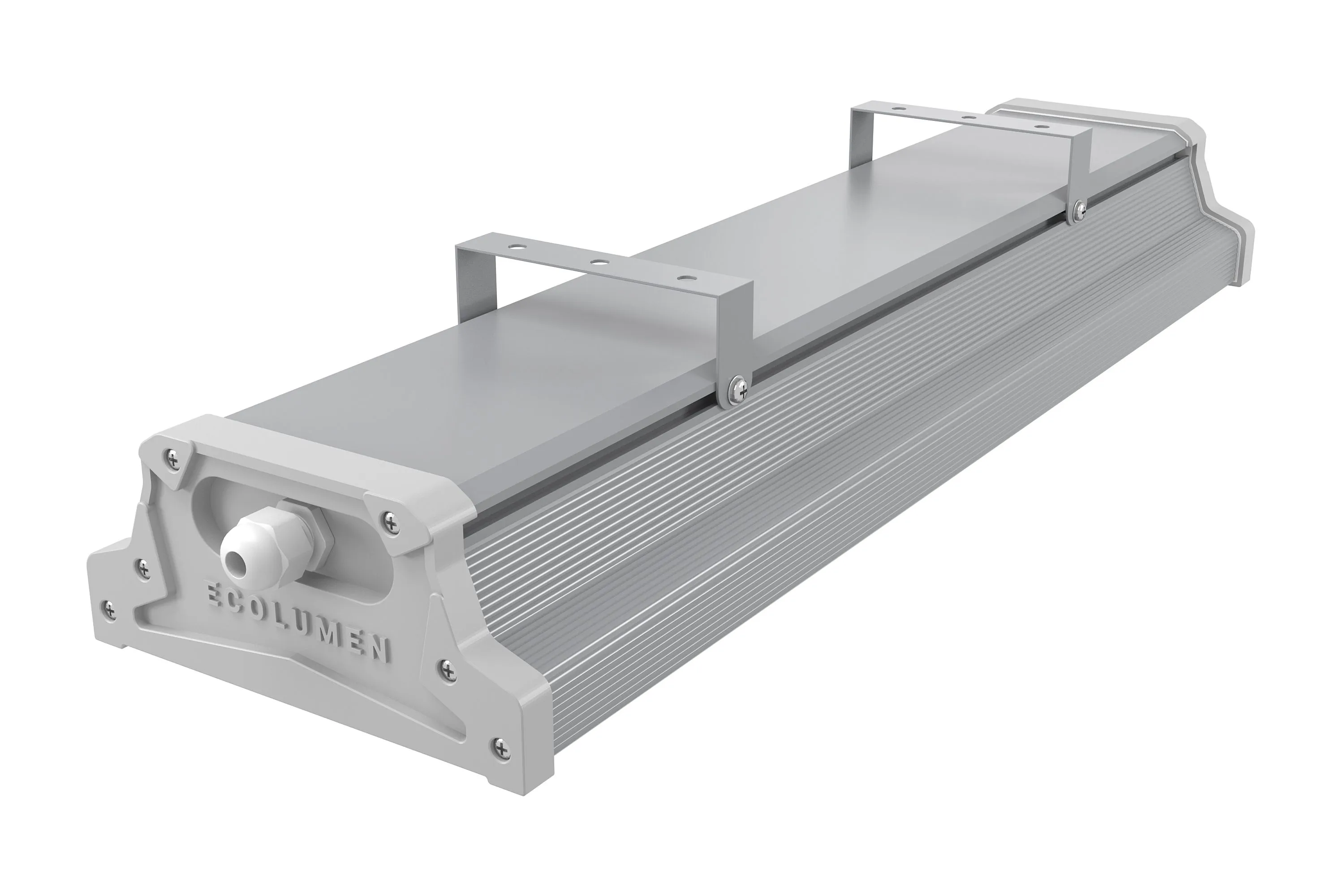 «Эколюмен AL» - промышленные светодиодные светильники. Корпус изделия изготовлен из алюминия с анодированным или полимерным покрытием. Светильники имеют степень защиты IP67 и защиту от перенапряжений до 420В.
