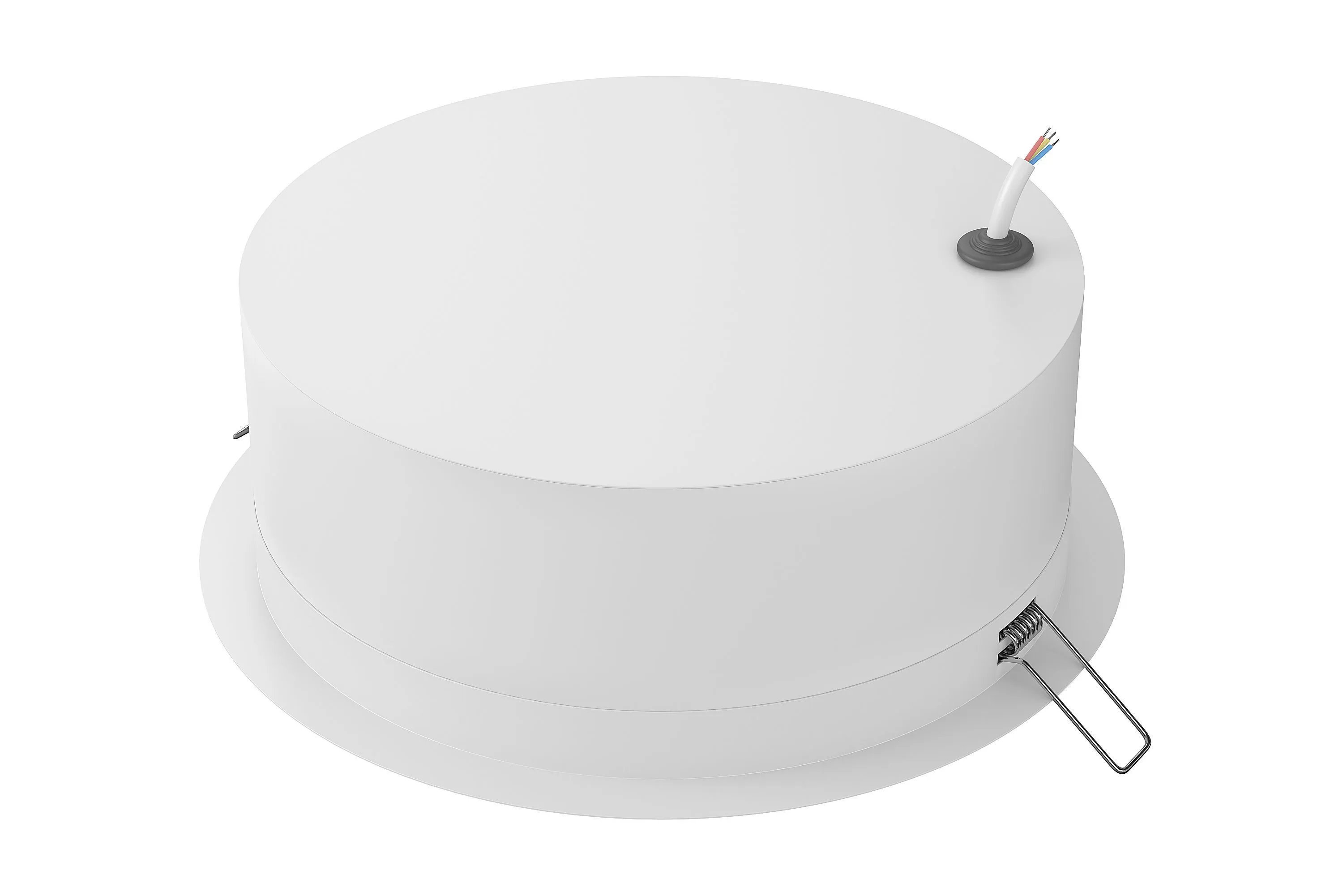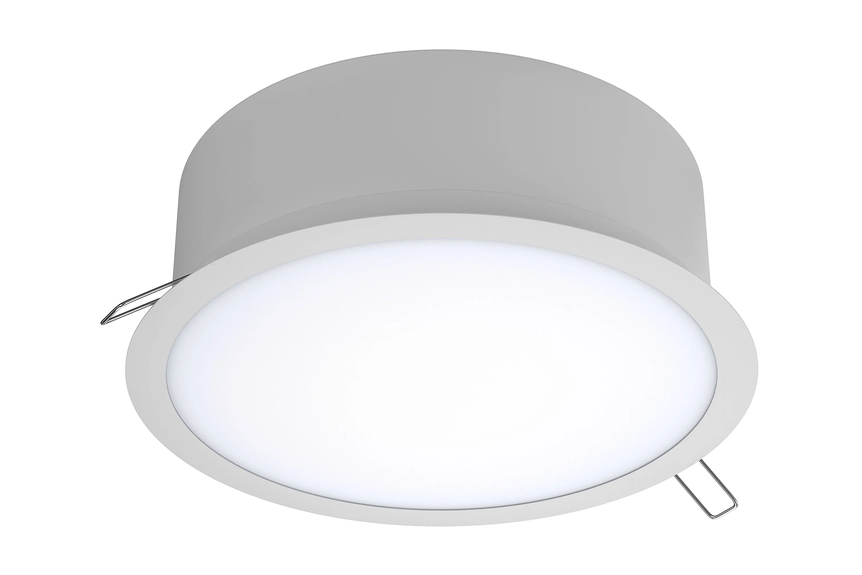 Светодиодный светильник «Даунлайт-R» представляет собой круглый встраиваемый осветительный прибор, который обеспечивает яркое и равномерное освещение. Круглые светильники «downlight» встраиваются в потолки из гипсокартона и другие подвесные потолки и панели. Изделие состоит из светодиодной части и драйвера, которые обеспечивают энергоэффективное и долговечное освещение. Светодиодные «Даунлайт» обычно используются для освещения офисных и торговых помещений, магазинов и объектов общественного питания и т.п., но могут применяться и в бытовых помещениях. Они доступны в различных размерах, формах, цветах корпуса, имеют различную цветовую температуру света, что делает их универсальным решением для различных типов интерьеров. Благодаря своей компактности и сокрытия корпуса, светильник «Downlight-R» является популярным выбором для создания современного и уютного интерьера. Могут применяться для всех типов подвесных и панельных потолков. Имеют удобное крепление с помощью пружинного зажима.