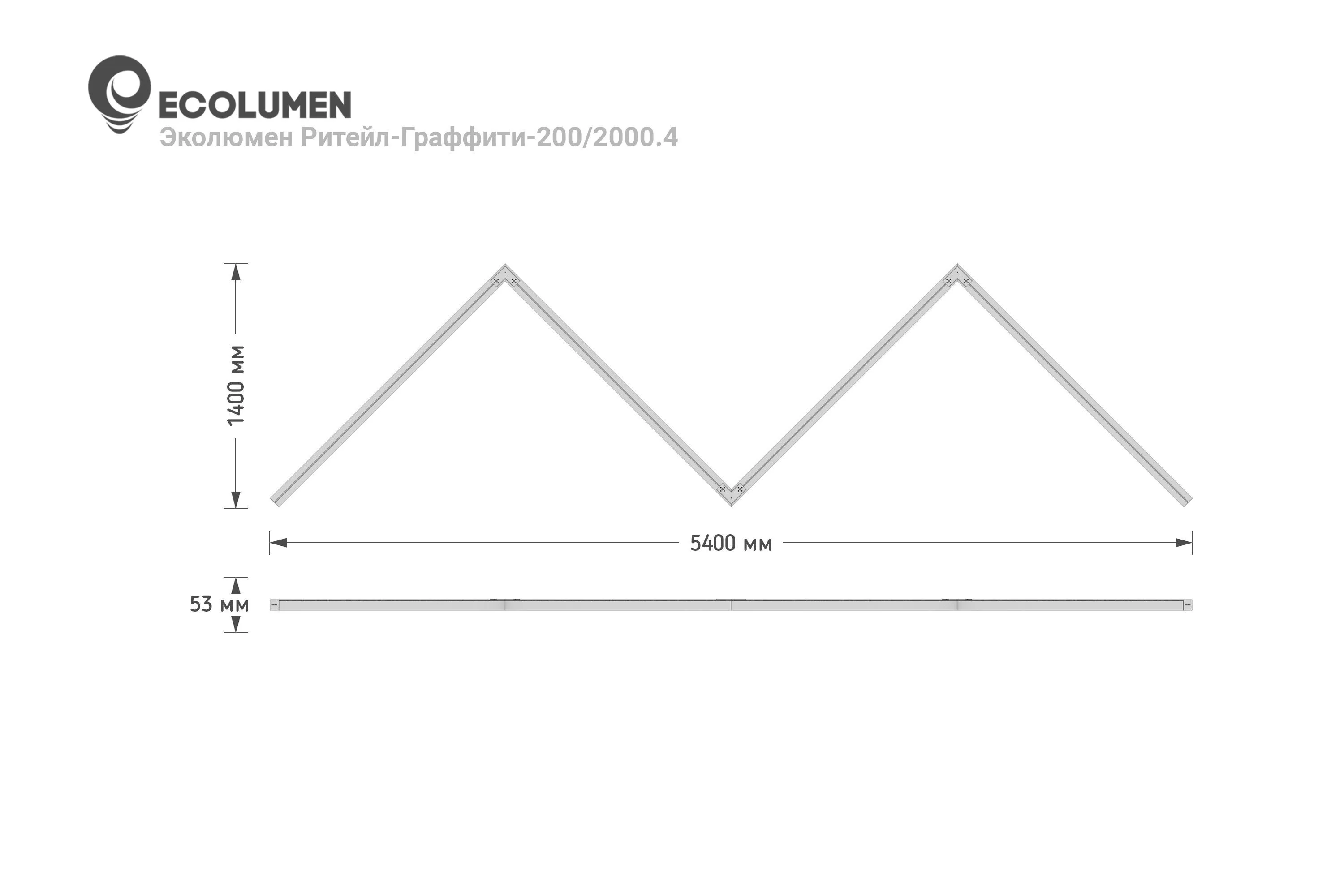 «Эколюмен Ритейл-Граффити» - российские светодиодные дизайнерские светильники в виде ломанной зигзагообразной линии различного размера из алюминиевого профиля сечением 60х60мм. Светильники дизайнерского освещения «Эколюмен-Граффити» используются для освещения дизайнерских помещений в стиле «Лофт», коммерческих объектов с современным дизайном. Этот высокоэффективный фигурный светильник хорошо впишется как в интерьер современного офиса или магазина, так и в домашний интерьер. Конструкция светильников позволяет собирать их в различные фигуры, парящие в воздухе на подвесах или размещать их на потолке либо стенах накладным способом.