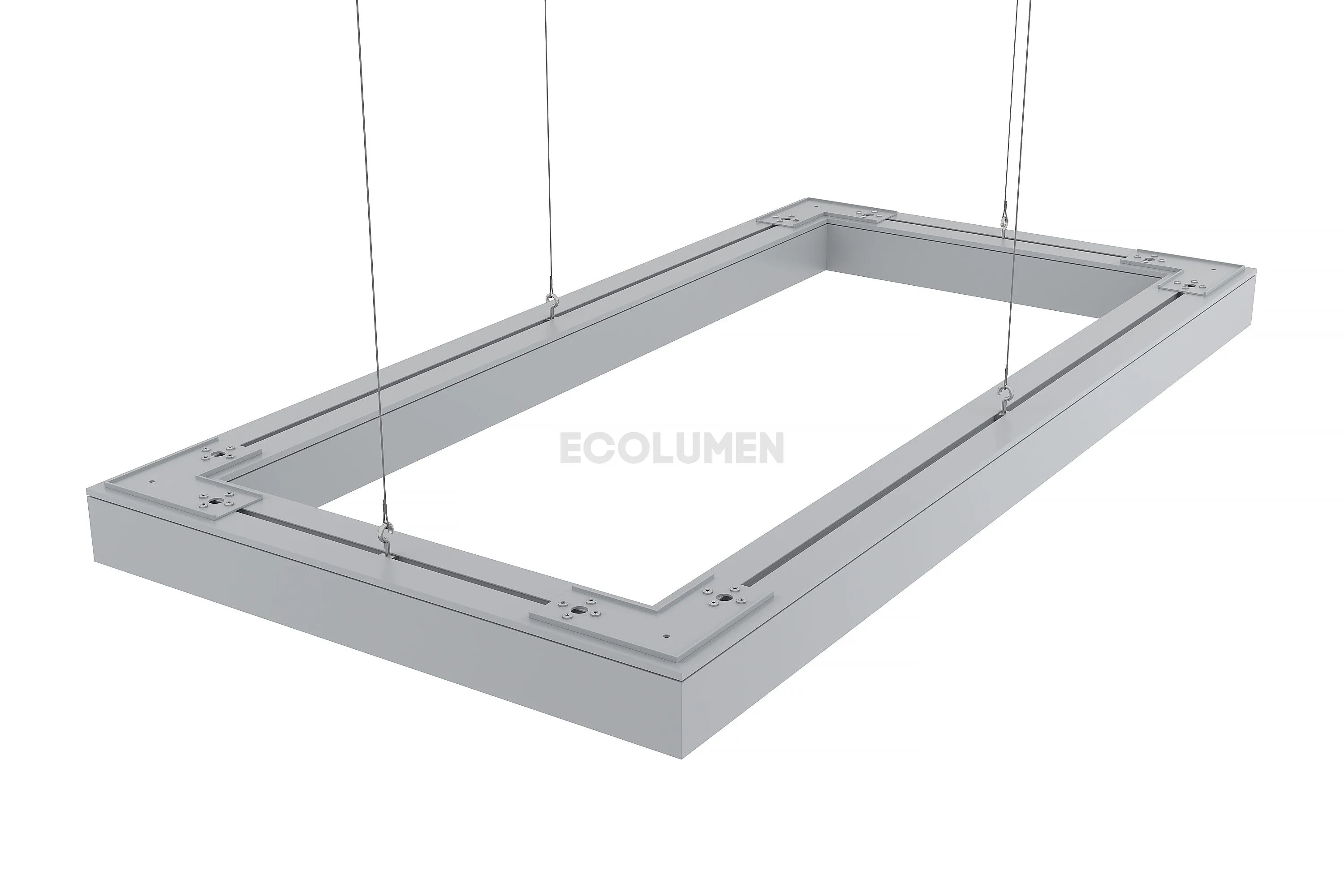 Особая конструкция светильников позволяет собирать их в различные фигуры, парящие в воздухе на подвесах или размещать их на потолке либо стенах накладным способом. Завод-изготовитель дизайнерских светильников «Эколюмен» кроме прямоугольных профильных конструкций производит осветительные приборы и других конфигураций: звезда, крест, квадрат, треугольник, ломаная линия и др.