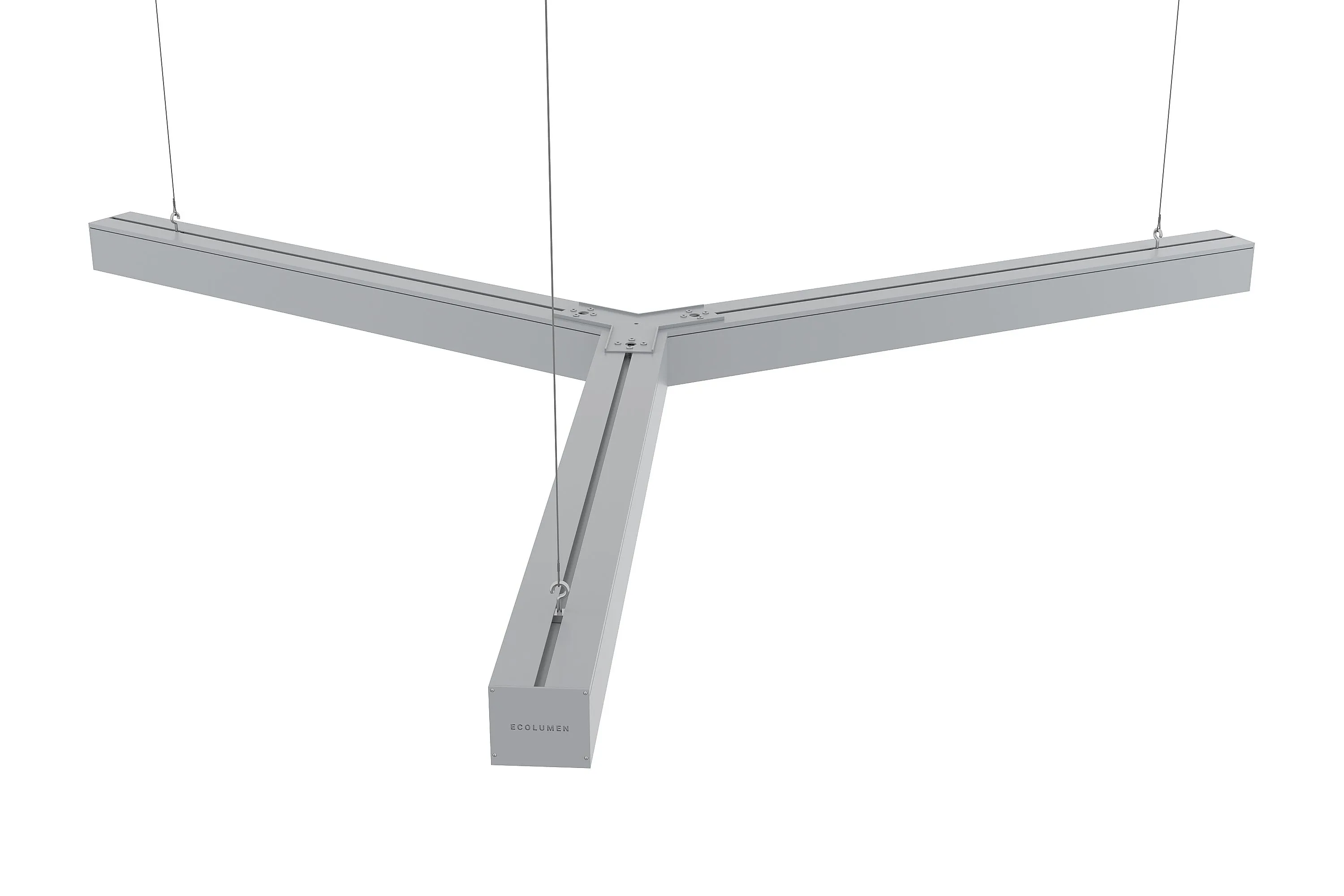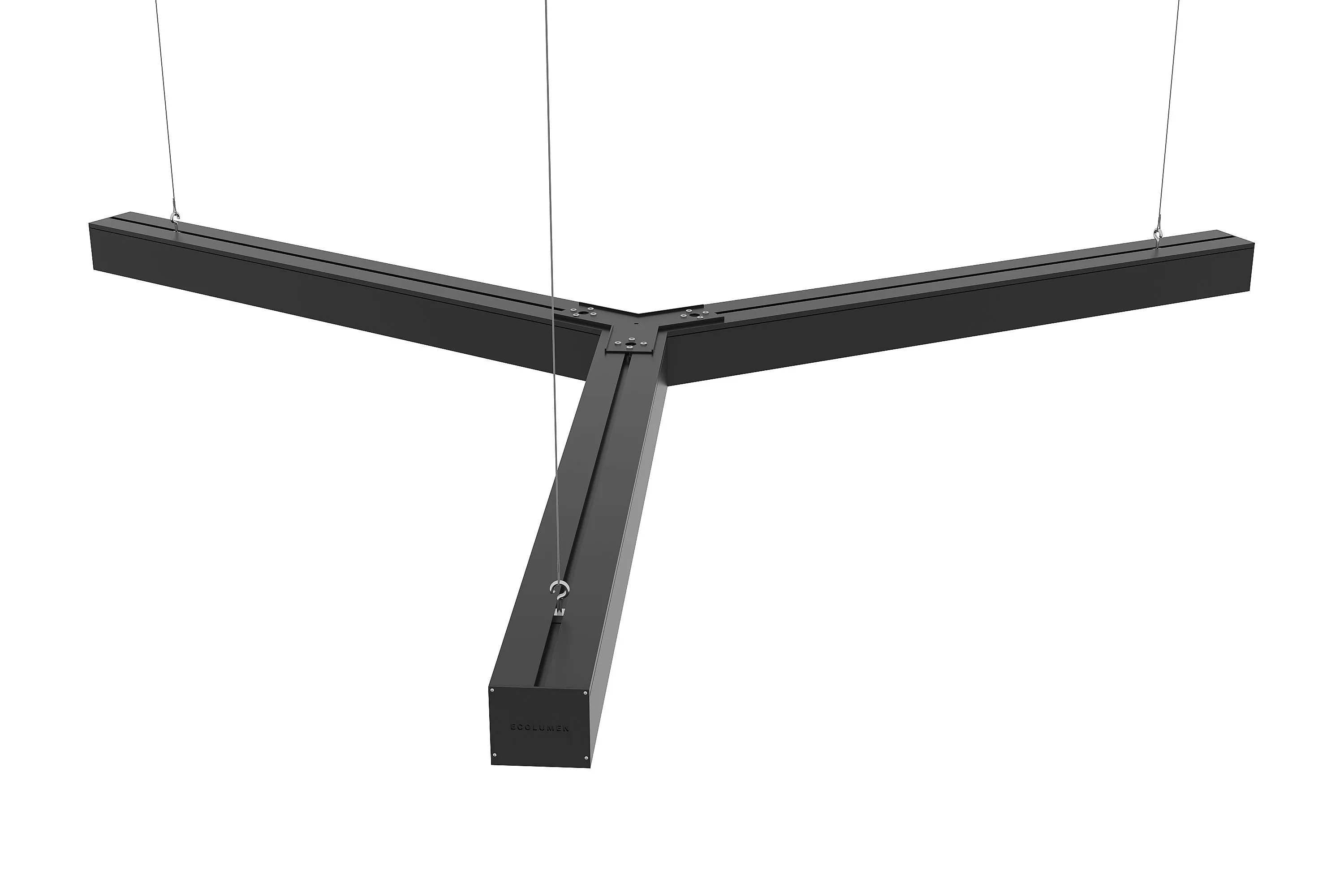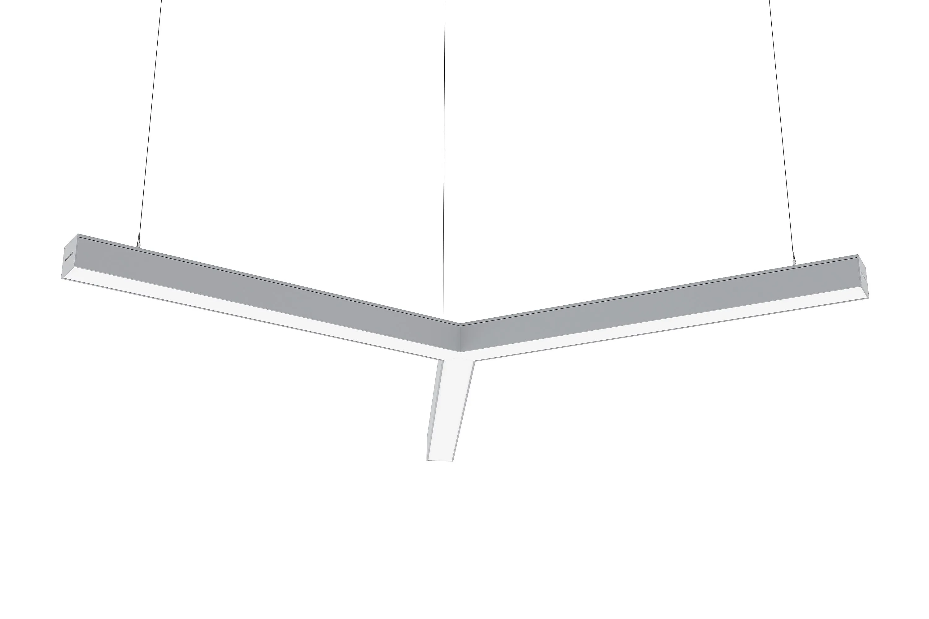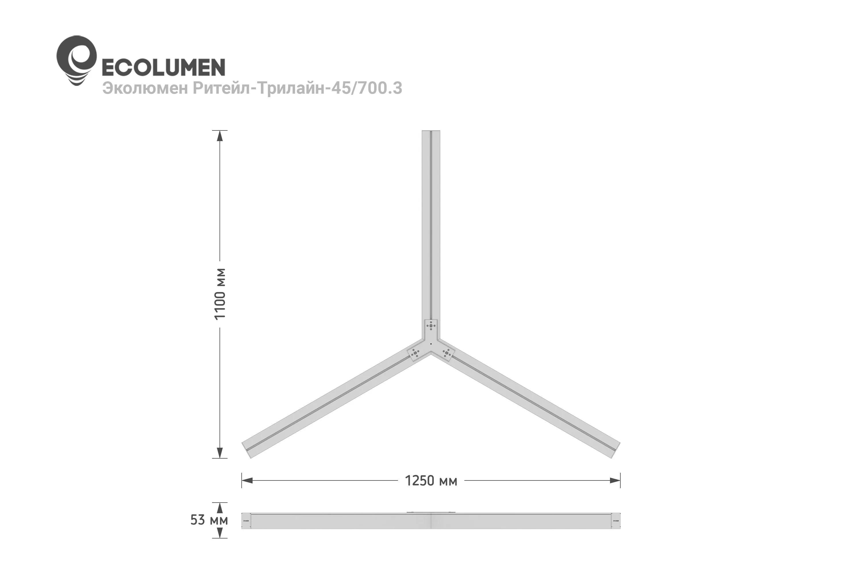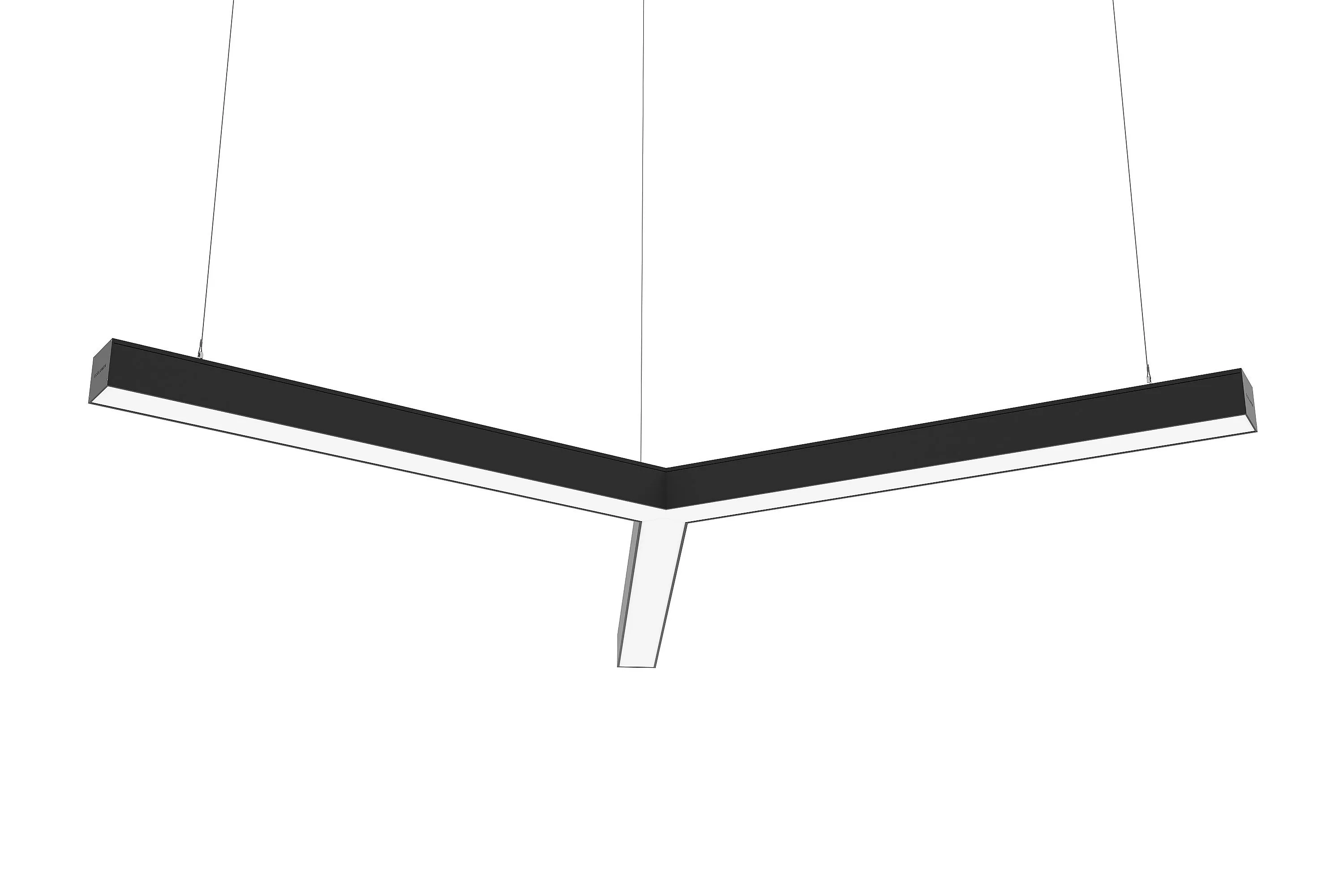 «ECOLUMEN-RETAIL-TRILINE» - российские светодиодные дизайнерские светильники в виде трёхлучевой звезды. Светильники изготовлены из алюминиевого профиля 60х60мм, образующего три равных по длине луча, под углом 120 градусов. Светильники дизайнерского освещения «Эколюмен-Трилайн» используются для освещения офисных и торговых площадей, кафе, магазинов и студий в стиле «лофт» и прочих помещений с потребностью в дизайнерском свете. Y-образная конструкция светильников позволяет собирать их в различные фигуры, парящие в воздухе на подвесах или размещать их на потолке либо стенах накладным способом. Опционально производятся модели для встраивания в подвесной потолок. Завод изготовитель дизайнерских светильников «Эколюмен» кроме трехлучевых конструкций производит и светильники других конфигураций: крест, квадрат, треугольник, прямоугольник, ломаная линия и др. Светильники изготавливаются с разным световым потоком от 3000 до 20000 Лм и могут использоваться как в качестве декоративного освещения и подсветки, так и в качестве основного освещения объекта. Светильники «Ритейл-Трилайн» изготавливаются с длиной лучей от 300 до 2000мм. Изделия комплектуются подвесами длиной 2 метра и окрашиваются в любой цвет по таблице RAL.