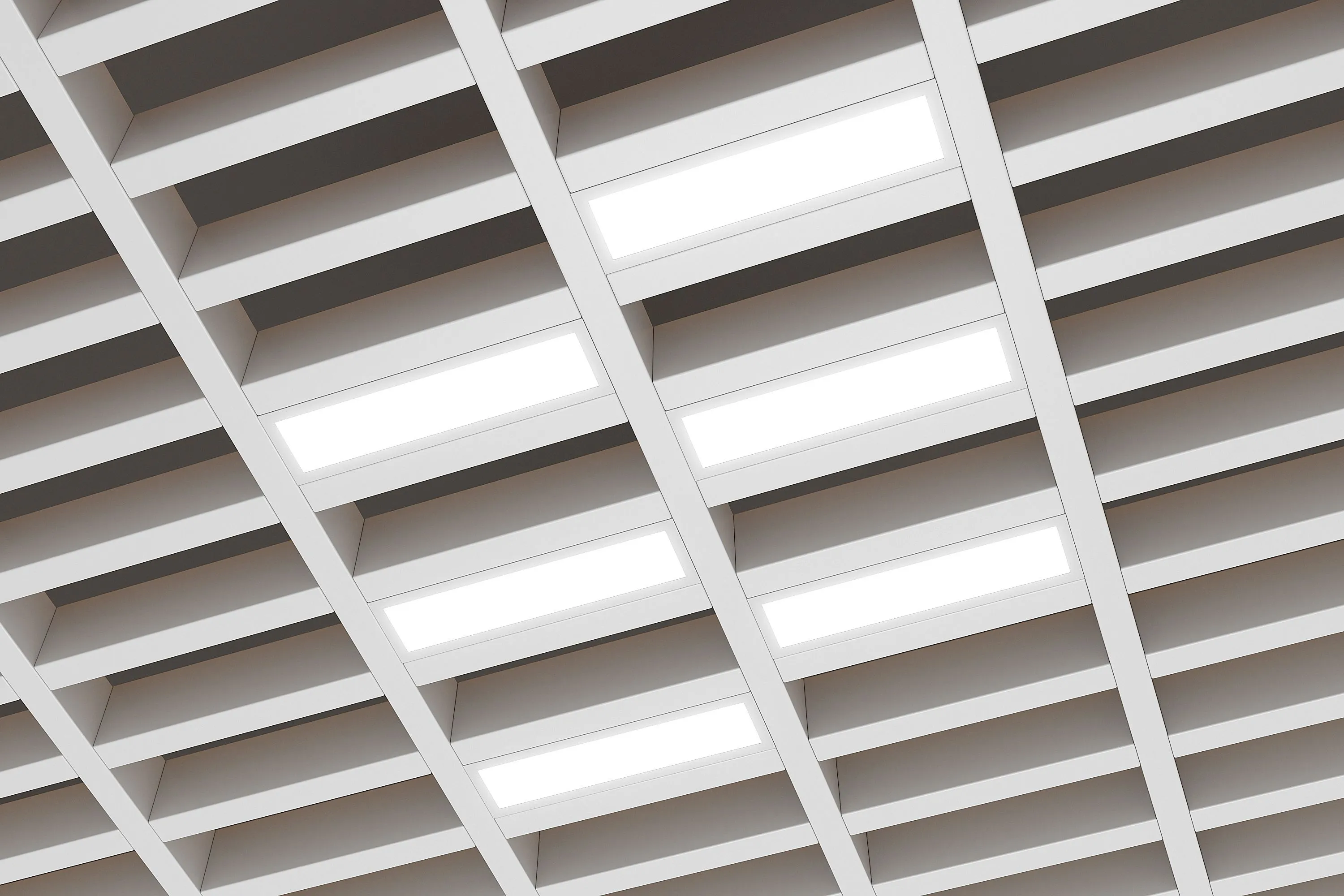 Встраиваемые Led cветильники грильято производятся под все известные стандарты подвесных реечных потолков. В ассортименте изделия как квадратной формы для ячеек грильято 75х75, 100х100, 150х150, 200х200 и др., так и прямоугольной формы любого размера для установки сразу в несколько ячеек, изготавливаются сетом по 8, 6, 3 и 1шт. Есть возможность изготовления потолочных светильников «грильято» и любых других размеров и конфигураций с любым количеством изделий в комплекте. Встроенные светильники «Домино» имеют рассеиватели «опал» и равномерную засветку. Групповое исполнение светильников позволяет получить множество вариантов различных световых композиций в реечных потолках. Это и симметричные и ассиметричные фигуры, хаотичное размещение, домино, шахматный порядок, линейное размещение по периметру, световые фигуры в форме квадрата или треугольника и т.п. Светильники имеют различную степень защиты IP20, IP40, IP54, IP65, IP67 в зависимости от места установки, назначения и могут быть применены в дизайне «Лофт», как замена светодиодных люстр и других типов освещения потолков грильято.