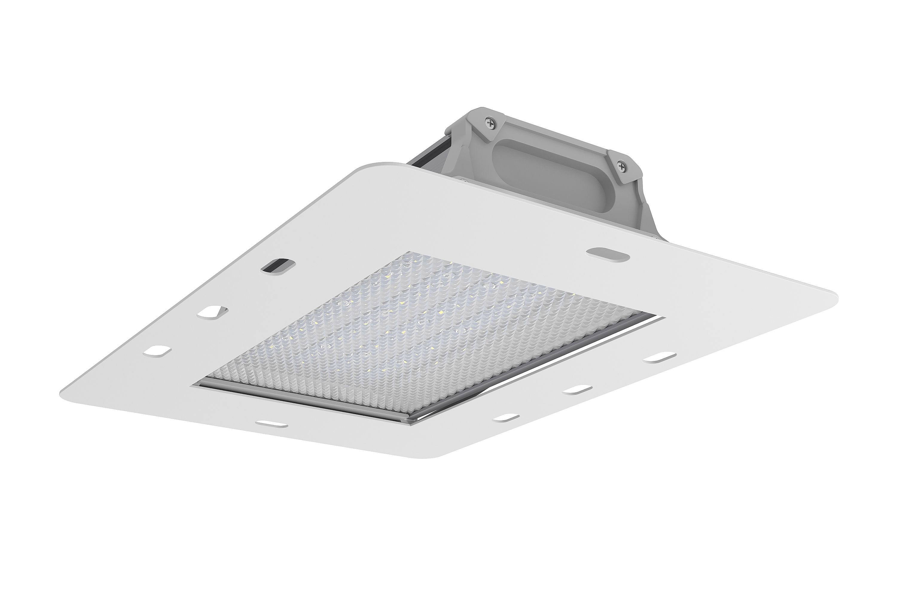 В комплект поставки входит монтажная, декоративная рамка, позволяющая встраивать светильники в потолки и навесы на автозаправочных станциях.
