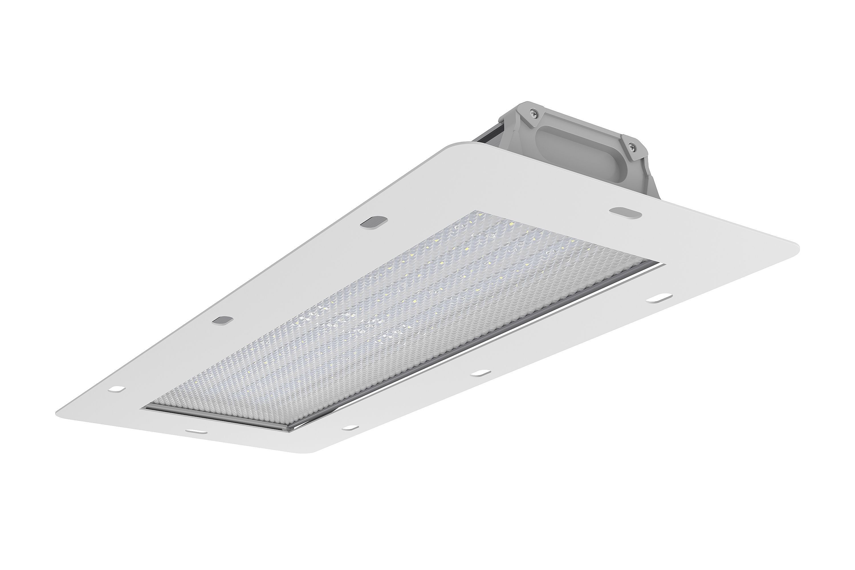 В комплект поставки входит монтажная, декоративная рамка, позволяющая встраивать светильники в потолки и навесы на автозаправочных станциях.