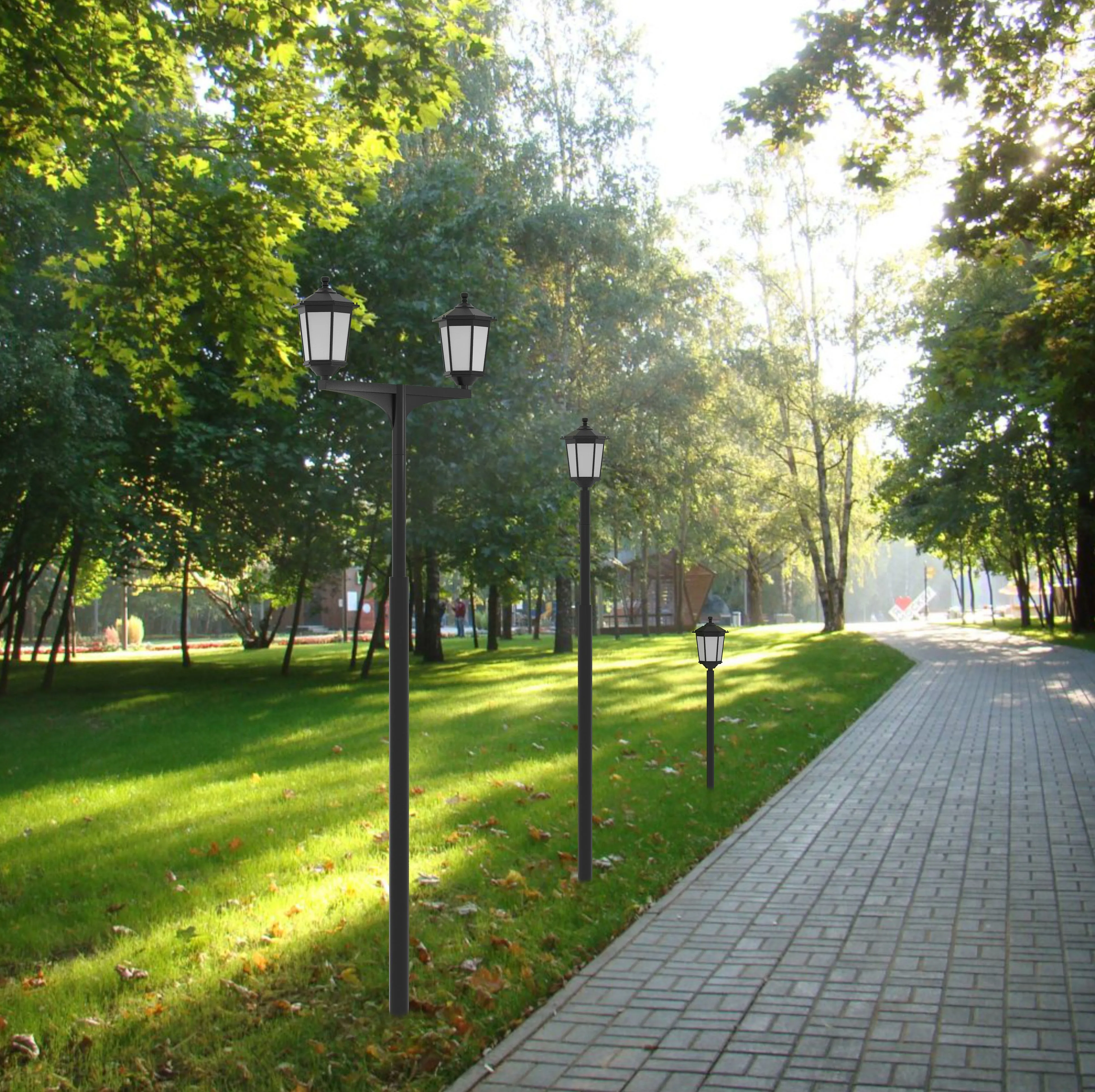 Благодаря своему ретро дизайну с плафонами шестиугольной формы и опор в минималистическом стиле, светильники хорошо вписываются в системы освещения улиц, парков, набережных, тротуаров, прогулочных зон и пешеходных дорожек. Светильник Эколюмен-Парк Нева 1 состоит из стальной опоры с термическим цинковым покрытием и полимерно-порошковым окрашиванием в любой цвет. Светильники так же могут комплектоваться закладными деталями.